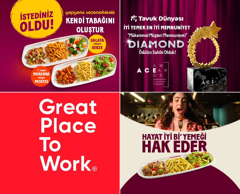 Herkese kaliteli, lezzetli, ulaşılabilir fiyatta bir yemeği kendini iyi hissedebileceği mekanlarda sunma misyonuyla yola çıktık ve ilk Tavuk Dünyası restoranımızı 2012 yılı şubat ayında İstanbul’da açtık. Tarifi bizde saklı eşsiz soslar ve çeşit çeşit baharatlarla, 12-14 saat marine ettiğimiz tavuklarımız, kişiye özel tavalarda hazırlanarak muhteşem bir lezzet hikayesine dönüştü ve Uluslararası Lezzet Enstitüsü tarafından Üstün Lezzet Ödülleri’ne layık görüldü.